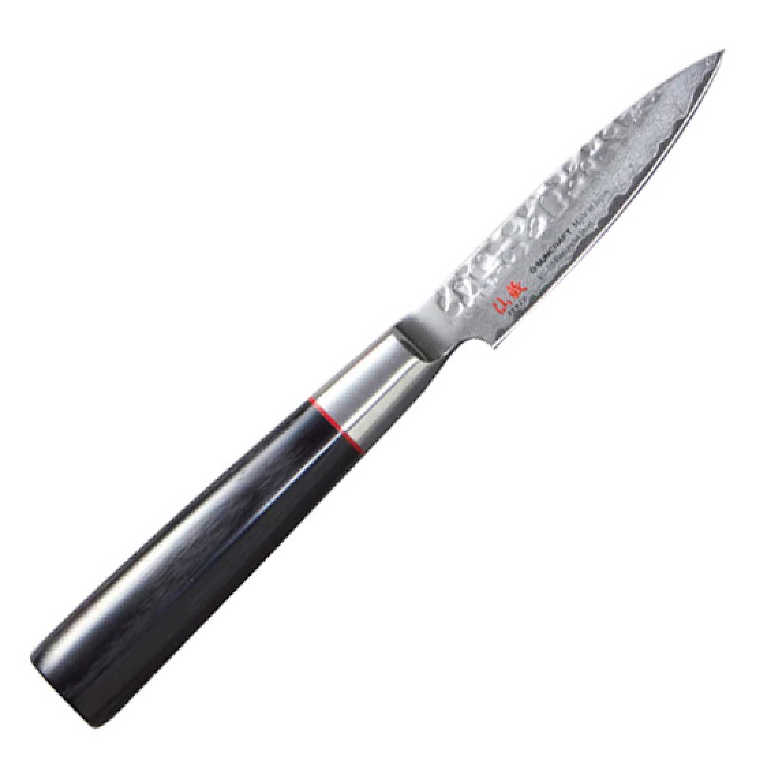 Dankzij de hardheid van ca. 61 HRC blijft dit mes bijzonder lang scherp — een zeldzaamheid bij kleinere messen. Je ervaart de voordelen van een hoogwaardig Japanse koksmes, maar dan in compact formaat. De ergonomische pakkahouten handgreep ligt stevig in de hand en biedt uitstekende controle, zelfs bij het snijden van kleine ingrediënten of bij precisiewerk.